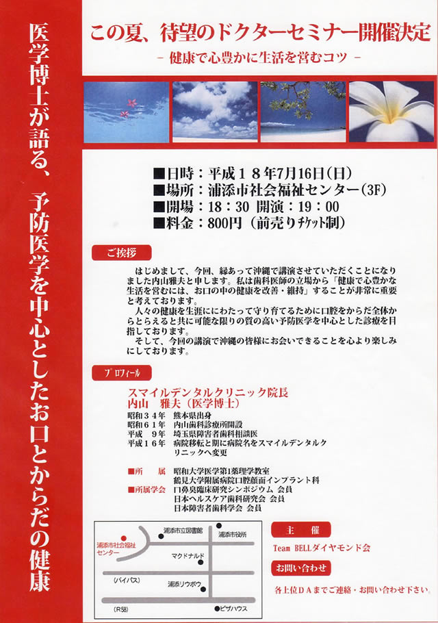 掲載されました「スマイルデンタルクリニック」のページです。当院概要をはじめ紹介文や当院院長「内山 雅夫」のプロフィールなどが掲載されております。