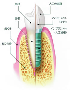 歯科用インプラントとは天然歯根の代用となる人工歯根のことです。